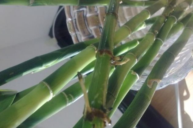 既然富贵竹根部已经发黑,那么接下来就是变成根部腐烂了。我们要做的就是把黑掉的根部处理掉,可以用剪子剪除,可以用美工刀切除,花儿谷在这里特别强调一点就是一定得把腐烂黑掉的本部去除干净,不能有剩余,以防止病菌扩散继续影响植株生长。